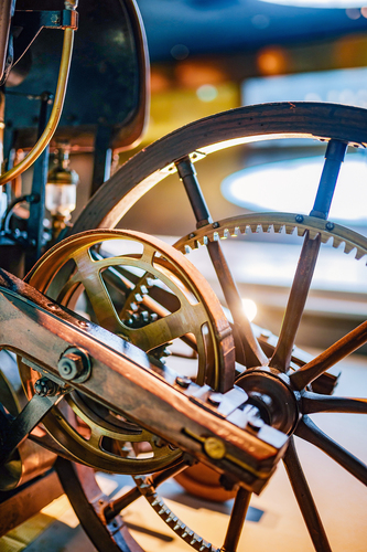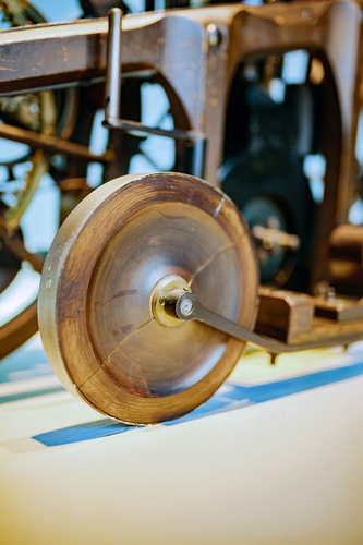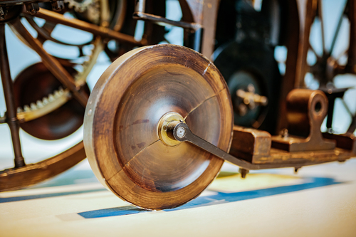 Erfindergeist trifft Handwerkskunst Der Versuchsträger verbindet Handwerkskunst und Maschinenbau der damaligen Zeit. Zum Gewerk der Wagnerei gehören der Holzrahmen und die Holzräder – wie auch bei Kutschen üblich. Die robuste Bereifung aus Eisen kommt vom Schmied. Die Kraftübertragung von der Kurbelwelle bis zum Vorgelege übernehmen Lederriemen, wie sie auch Transmissionsanlagen von Dampfmaschinen verwenden. Eine Gangschaltung im modernen Sinn gibt es nicht. Der Riemen kann freilich auf zwei Scheiben mit unterschiedlichem Durchmesser aufgelegt werden – das bietet zwei verschiedene, feste Übersetzungen. Moderner Maschinenbau der Epoche ist das Vorgelege aus Ritzel und Zahnkranz. Der gerade Lenker dürfte von den im selben Jahrzehnt entwickelten, sogenannten Sicherheitsfahrrädern mit gleich großen Rädern inspiriert sein.