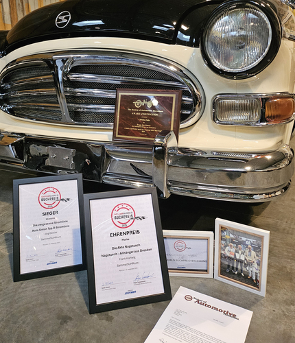 Für das Buch „Krupp des Ostens – Das Fahrzeugwerk Hunger aus Frankenberg“ erhielt ich im Oktober 2025 als Autor und Verleger die begehrte internationale Ehrung in Form des Award of Distinction (SAH-Award) der „Society of Automotive Historians“ aus den USA. Seit mehr als einem halben Jahrhundert haben diesen Preis bislang insgesamt nur acht Deutsche in Empfang nehmen können. Neben Halwart Schrader bin ich darunter der Einzige, der dies nun schon zum dritten Mal geschafft hat!