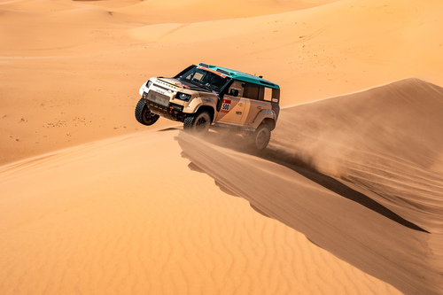 Das Defender Rally-Trio erzielte in 10 der 13 Etappen einen Dreifachsieg und demonstrierte damit Hingabe, Präzision und unerschütterlichen Kampfgeist. In den 14 Tagen des kräftezehrenden Wettbewerbs legten die drei Defender Dakar D7X-R insgesamt 24.000 km durch die saudi-arabische Wüste zurück.