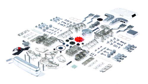 Der 200-teilige, funktionsfähige Bausatz mit Originalsound ist mittlerweile ein echter Porsche-Fan- und Bausatz-Klassiker. Einer, der nicht nur Freude beim Bauen und Laufenlassen macht, sondern auch durch seinen Maßstab in 1:3 einfach Freude beim Betrachten bereitet. FRANZIS spendiert dem Klassiker zum Jubiläumsjahr 2025 ein umfangreiches Facelift. Dank deutlich sichtbarer weiß-blauer Zündfunken lässt sich die Funktionsweise des Originals noch unmittelbarer erleben. Außerdem erhält er eine soundkräftigere Basis mit Ein-Knopf-Bedienung und ein ruhigeres Laufgeräusch dank geringerer Fertigungstoleranzen - alles im typischen Porsche-Sound. Dieser kann auch über einen Audio-Ausgang über jede Lautsprecheranlage in vollen Zügen genossen werden. Insgesamt wirkt der Bausatz durch eine Farboptimierung wesentlicher Bauteile noch wertiger.