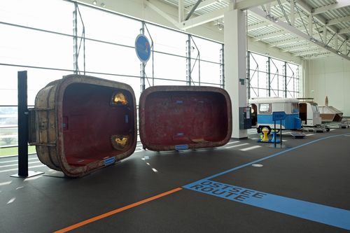 Highlights sind zwei riesige Formen im Originalzustand, in denen in den 1960er Jahren die GFK-Schalen des Fahti Luxus entstanden sind, und ein DeLorean DMC-12, unter dessen Edelstahlverkleidung eine Kunststoff-Karosserie steckt.