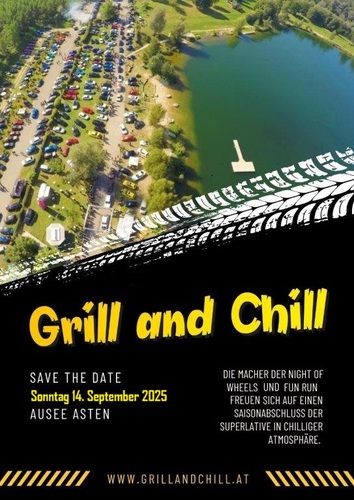 „Grill & Chill“ ist ein Treffen mit Fahrzeugbewertung für alles, das fährt. Jedes Jahr überraschen die Besucher mit ausgefallenen, seltenen Fahrzeugen! Sonntag, 14.9.25 ab 9 Uhr am Ausee bei Linz in 4481 Asten. Eintritt ab 20 €.
