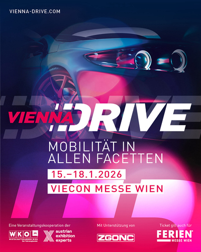 Parallel zur Ferien-Messe findet am Messegelände in 1020 Wien, Trabrennstraße 7, von Donnerstag, 15.1. bis Sonntag, 18.1.26 wieder die Mobilitätsmesse „Vienna Drive“ statt. Auf über 15.000 m2 präsentiert der Wiener Fahrzeughandel alles zum Thema Fortbewegung. Viele Fahrzeuge stehen für eine Probefahrt vor Ort bereit! Geöffnet Do-Sa 10-18 Uhr, So 10-17 Uhr. Tageseintritt 15,50 € als Kombiticket mit der Ferien-Messe.