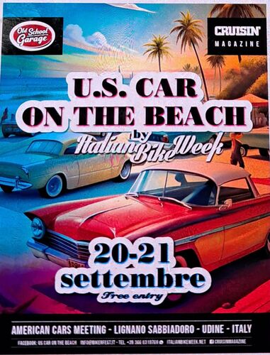 Im Rahmen der Italian Bike Week dürfen am Samstag, 20.9. und Sonntag, 21.9.24 jeweils ab 9 Uhr am Parkplatz des Stadions Teghil in der Viale Europa 142, 33054 Lignano Sabbiadoro auch „US-Cars on the Beach“.