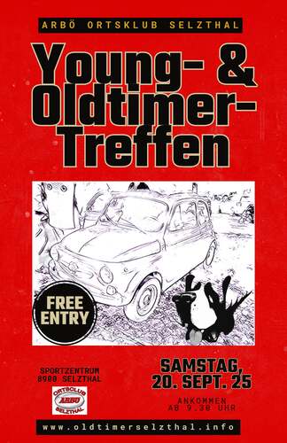 Young- und Oldtimertreffen am Samstag, 20.9.25 ab 9.30 Uhr beim Sportzentrum, 8900 Selzthal (bei Liezen) 240.