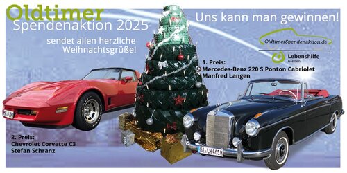 Gutes tun und dabei einen Oldtimer gewinnen, das ist die alljährliche „Oldtimerspendenaktion der Lebenshilfe Gießen für Menschen mit Behinderung“. Es gibt über 200 sehr attraktive Preise zu gewinnen, u.a. ein Mercedes Ponton Cabrio und eine Chevrolet Corvette. Schon mit einer kleinen Spende ist man dabei. Die tolle Aktion läuft noch bis 20.1.26.