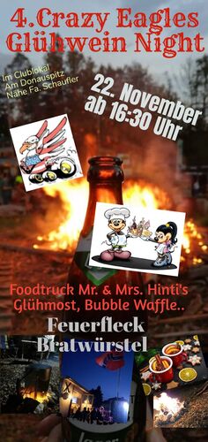 Crazy Eagles Glühwein Night am Samstag, 22.11.25 ab 16.30 Uhr, Am Donauspitz 4, in 3370 Ybbs.