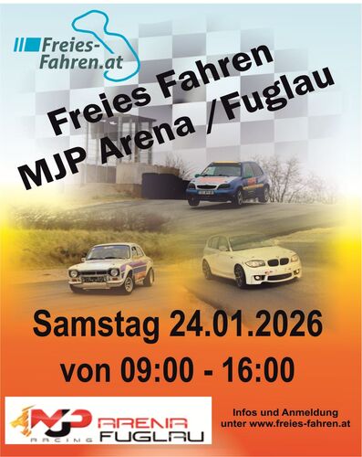 Mit dem eigenen Auto auf einer Rennstrecke richtig Gas geben? Das ist am Samstag, 24.1.26 ab 9 Uhr beim „Freien Fahren“ in der MJP Arena in 3591 Fuglau 59 (bei Horn) gegen eine Gebühr von 150 € möglich.
