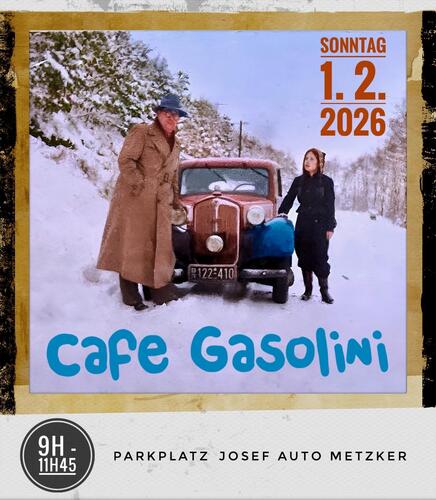 Der beliebte Altblechfrühschoppen „Cafe Gasolini“ geht am ersten Sonntag des Monats in die nächste Runde, diesmal am 1.2.26 ab 9 Uhr am Gelände von Auto Metzker, Lokalbahnweg 6, 2334 Vösendorf, Zufahrt über die SCS vor den südlichen Toren Wiens.