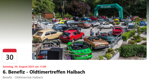 Oldtimer- & Carmeet am Samstag, 30.8.25 ab 10 Uhr in 8212 Hart 113 (nördlich Gleisdorf) bei der Gussmag Waschanlage.