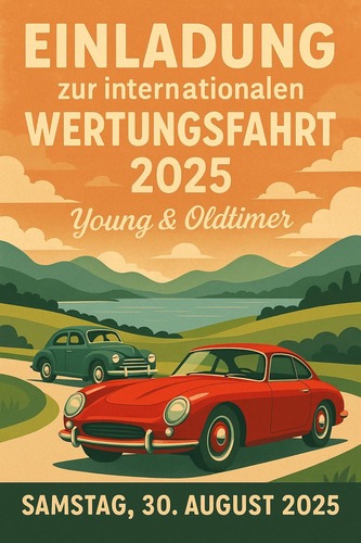 Bei der Wertungsfahrt des OMG Nussdorf geht es darum, eine bekannte Strecke von ca 90 km mit möglichst geringer Abweichung zu einer bestimmten Zeit zu bewältigen. Die Herausforderung dabei: die vom Veranstalter vorgegebene Zeit ist geheim! Treffpunkt am Samstag, 30.8.25 ab 11.30 Uhr, oberhalb der Turmöl Tankstelle in der Dorfstraße 16, 4865 Nußdorf am Attersee. Nenngeld 25 €. Anmeldung erforderlich.