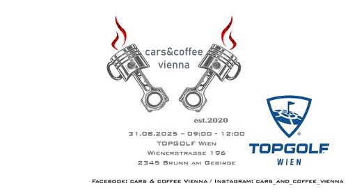 “Cars & Coffee”, das gemischte Oldtimer- und Sportwagentreffen, diesmal am Sonntag, 31.8.25 ab 9 Uhr bei Topgolf, Wienerstraße 196, 2345 Brunn am Gebirge. Frühstück und Golfen ab 10 Uhr. Anmeldung für den Abschlag mit dem Code „cars&coffee“ bei