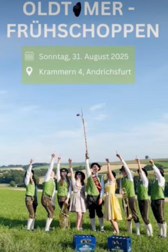 Oldtimerfrühschoppen mit Ausfahrt, Prämierung, Tombola und Hüpfburg für die Kleinen am Sonntag, 31.8.25 ab 10 Uhr in 4754 Krammern 4 (nördlich von Ried im Innkreis).