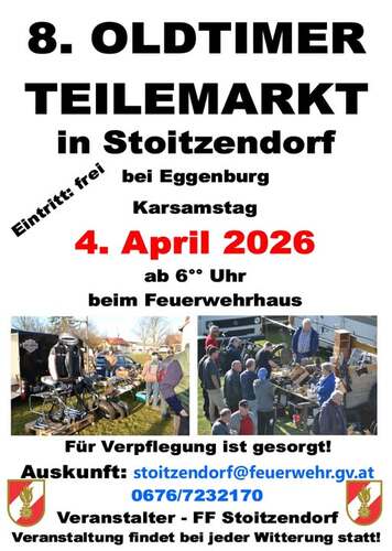 Statt Schokohasen kann man am Samstag, 4.4.26, bereits ab 6 Uhr früh Oldtimerteile beim Markt der Feuerwehr in Stoitzendorf 126 bei 3730 Eggenburg suchen & finden.