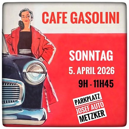 Auch Anfang April gibt es wieder den beliebten Altblechfrühschoppen „Cafe Gasolini“, diesmal am Sonntag, 5.4.26 ab 9 Uhr am Gelände von Auto Metzker, Lokalbahnweg 6, 2334 Vösendorf, Zufahrt über die SCS vor den südlichen Toren Wiens.