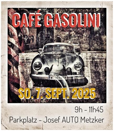 Auch der beliebte Altblechfrühschoppen „Cafe Gasolini“ geht am ersten Sonntag des Monats in die nächste Runde, diesmal am 7.9.25 ab 9 Uhr am Gelände von Auto Metzker, Lokalbahnweg 6, 2334 Vösendorf, Zufahrt über die SCS vor den südlichen Toren Wiens.