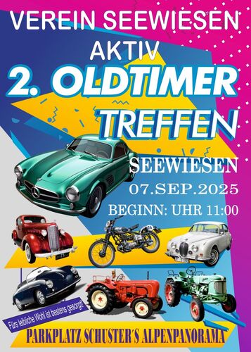 Oldtimertreffen am Sonntag, 7.9.25 ab 11 Uhr in 8636 Seewiesen 36 am Parkplatz von Schusters Alpenpanorama am Hochschwab zwischen Mariazell und Aflenz.