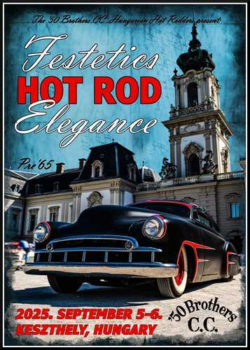 Die ungarische Sektion der “50`s Brothers C.C.“ lädt am Freitag, 5.9. ab 16 Uhr und Samstag, 6.9.25 zum „Festetics Hot Rod Elegance“ an den Balaton. Treffpunkt ist der Campingplatz in 8315 Gyenesdiás, Madách u. 43, bei Keszthely. Konzerte und Präsentation der Fahrzeuge sind die Highlights des umfangreichen Rahmenprogramms.